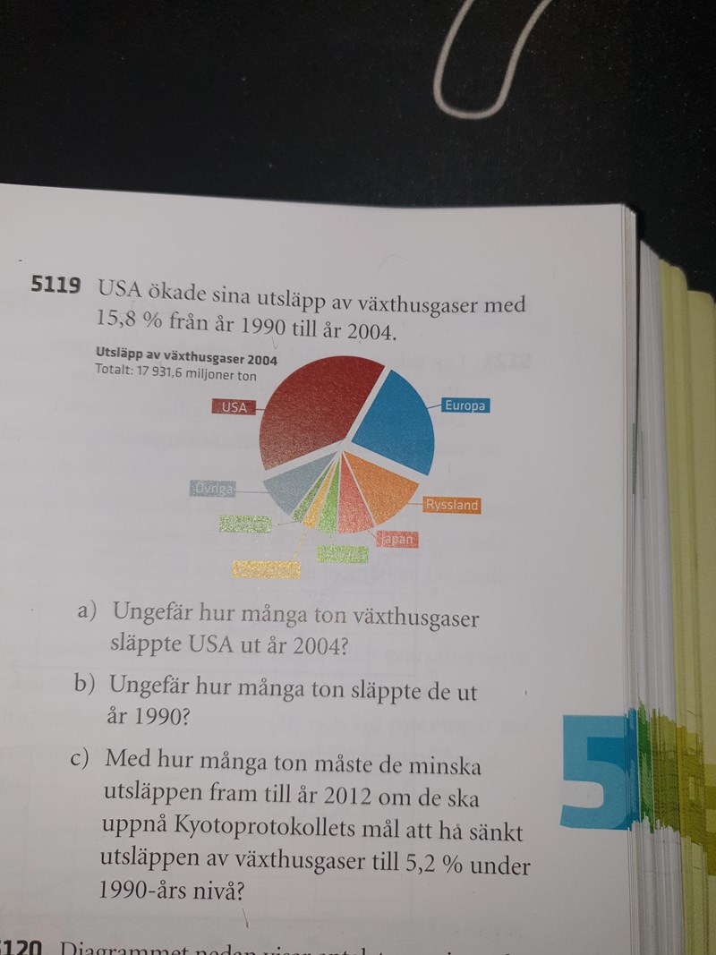 Hur många ton får USA släppa ut om de skall följa Kyotoprotokollets mål? Du behöver svaret i b-uppgiften för detta.