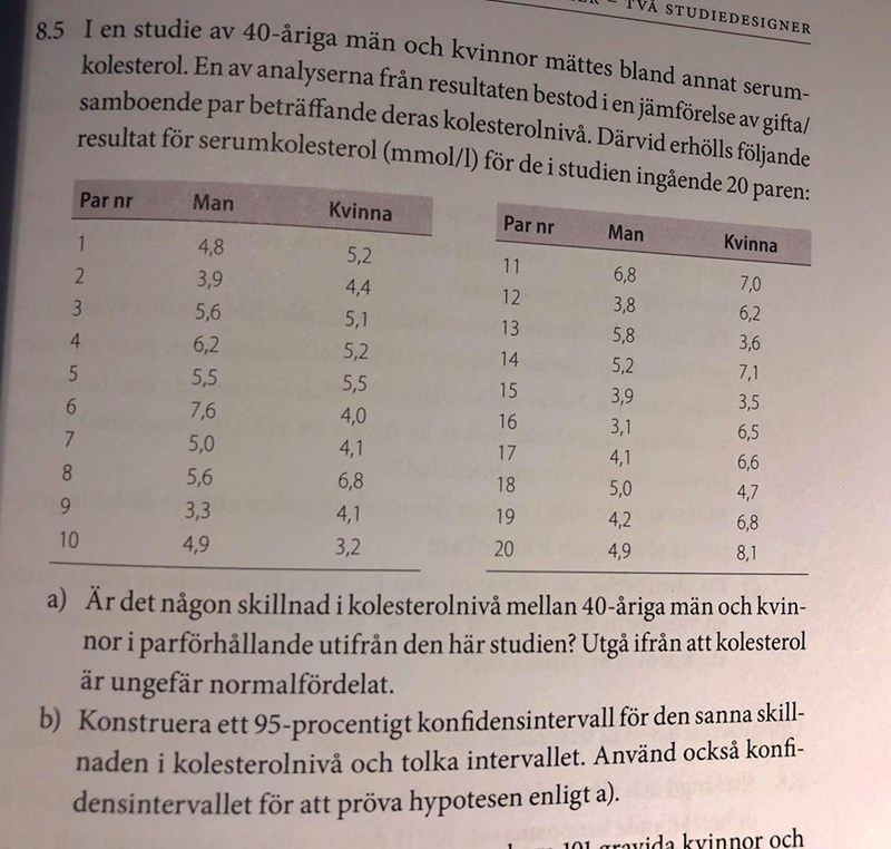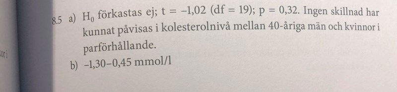 Denna uppgift handlar om att göra hypotesprövningar, testfunktion och konfidensintervall. Jag vet svaret, men inte hur jag ska gå tillväga för att beräkna svaret. Infogar även en bild på en formel man kan använda. Tack!!