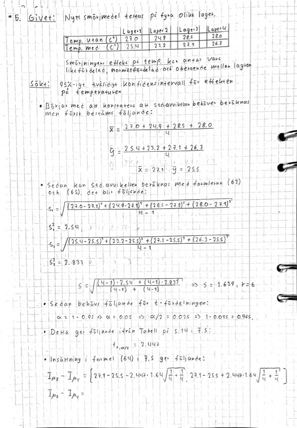 Hej, jag skulle behöva feedback på en uppgift jag inte förstår vad jag gör för fel, det är från ett övningspapper ifrån en kurs i Statistik med inriktning på konfidensintervaller