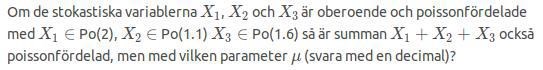 Jag svarade med Po(2+1.1+1.6)=Po(3.7) men det var fel av någon anledning.