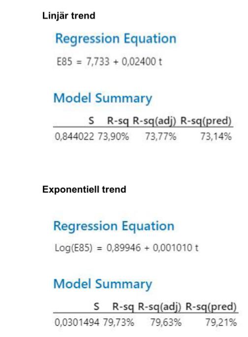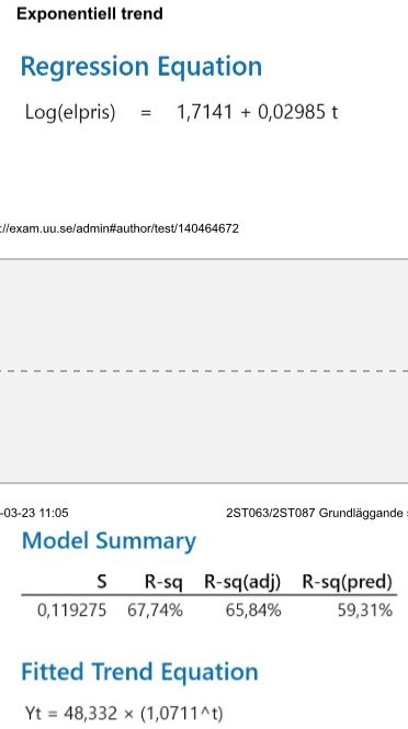 Jag vet att svaret på denna fråga är att en exponentiell trend passar bäst, men varför? Är det utifrån själva figuren jag ska kunna tolka detta eller är det utskrifterna från minitab som avslöjar den bäst passande modellen och isåfall vadå?