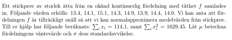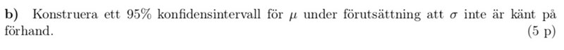 Hej, jag skulle behöva hjälp med att tolka den informationen som jag fått given i en gammal tentafråga (i Statistisk Analys) och förstår hur man använder sig utav denna information i lösningen. Frågan är följande: