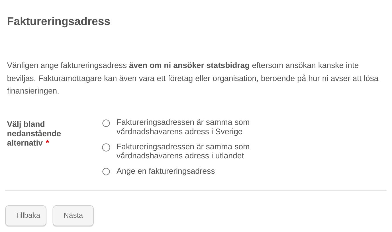 Du anger vilken av adresserna som papper ska komma till, om det är adressen som ni har i Sverige, utomlands eller om det är en annan adress än det som du redan skrivit in(eller som är kopplat till folkbokföringen).