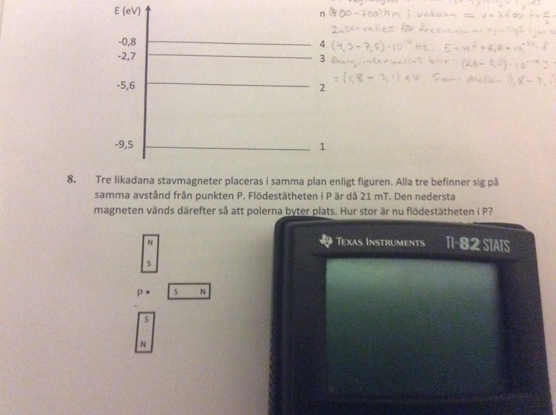 Kombinatorik skrev :smaragdalena skrev :1. För att förenkla, och kunna komma på att de båda andra stavmagneterna "tar ut varandra" i punkten.