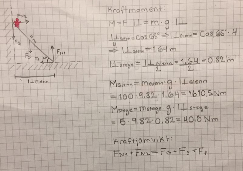 Stegens tyngdpunkt är på mitten va stegen, borde då stegens momentarm vara hälften av Glenns momentarm?