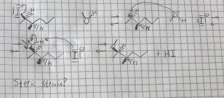Frågan säger att båda utfallen är stereoisomerer av varann så jag antar att något måste ske vid de kirala centrumen. Kanske roterar en av dem och blir från R till S? Men jag är då osäker på vilken av dem som roterar.