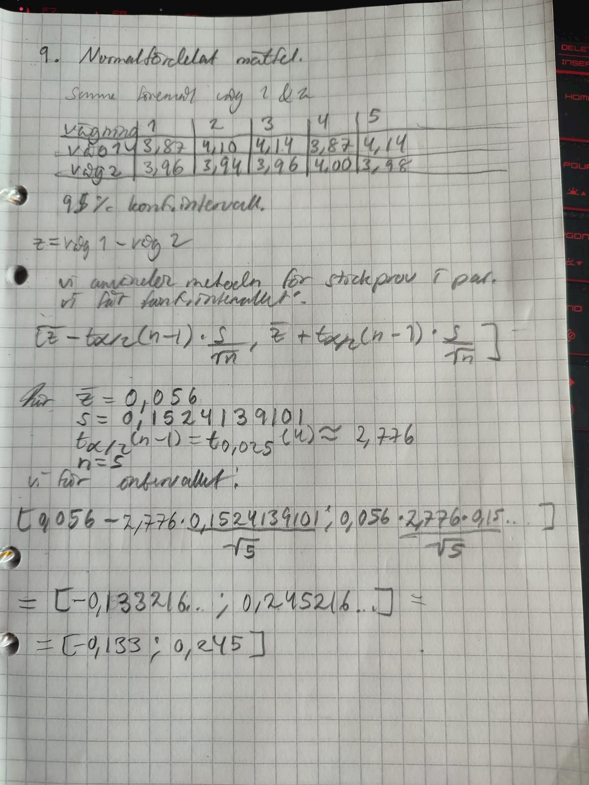 farfarMats skrev:OM de hade vägt 5 olika föremål i mätparen ( alltså ett föremål i x1,y1 och ett annat i x2,y2 etc) så måste du använda parvis för då finns det, som de skriver, en störande variation mellan paren.