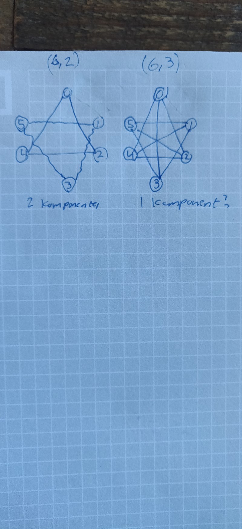 Jag kom fram till att nästa (6,3 ) blir en stjärna med 2 sammanhängande komponenter, men kan man säga att den är sammanhängande om den har 2 sammanhängande komponenter? och hur får man (6,4) och (6,5)?