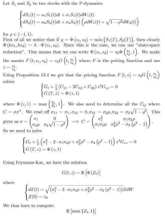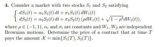 Jag har givit dig lösning till problemet; allt är upplagt för att du ska tillämpa gängse metodik för oberoende Wienerprocesser på den aktuella situationen. Den enda utmaningen i uppgiften handlade om hur korrelationen skulle hanteras.