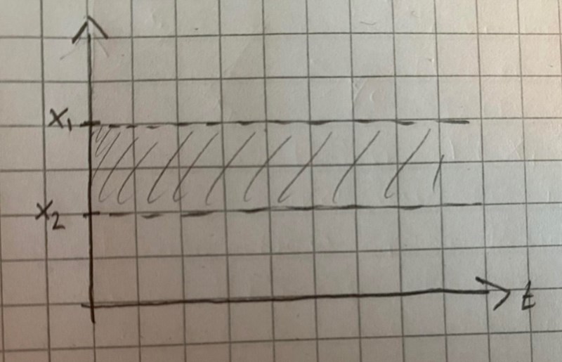 T.ex på bilden, att man alltså vill beräkna sannolikheten för att varje utfall hamnar inom "rännan" markerad nedan.