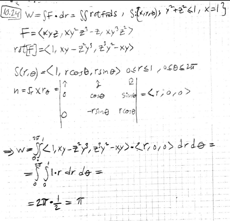 1. Jag vet att det går att använda Stokes formel. Men är det "rätt" att utgå från formeln i första raden? Jag får dock en jobbig integrand, ja.