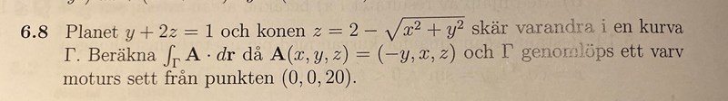 och en normalvektor till ytan måste ha positiv z-komponent om Γ genomlöps moturs sett från (0,0,20).