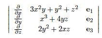 Den där determinanten blir (4y-4y,2z-2z,3x^2x^2-2y) = (0,0,-2y)