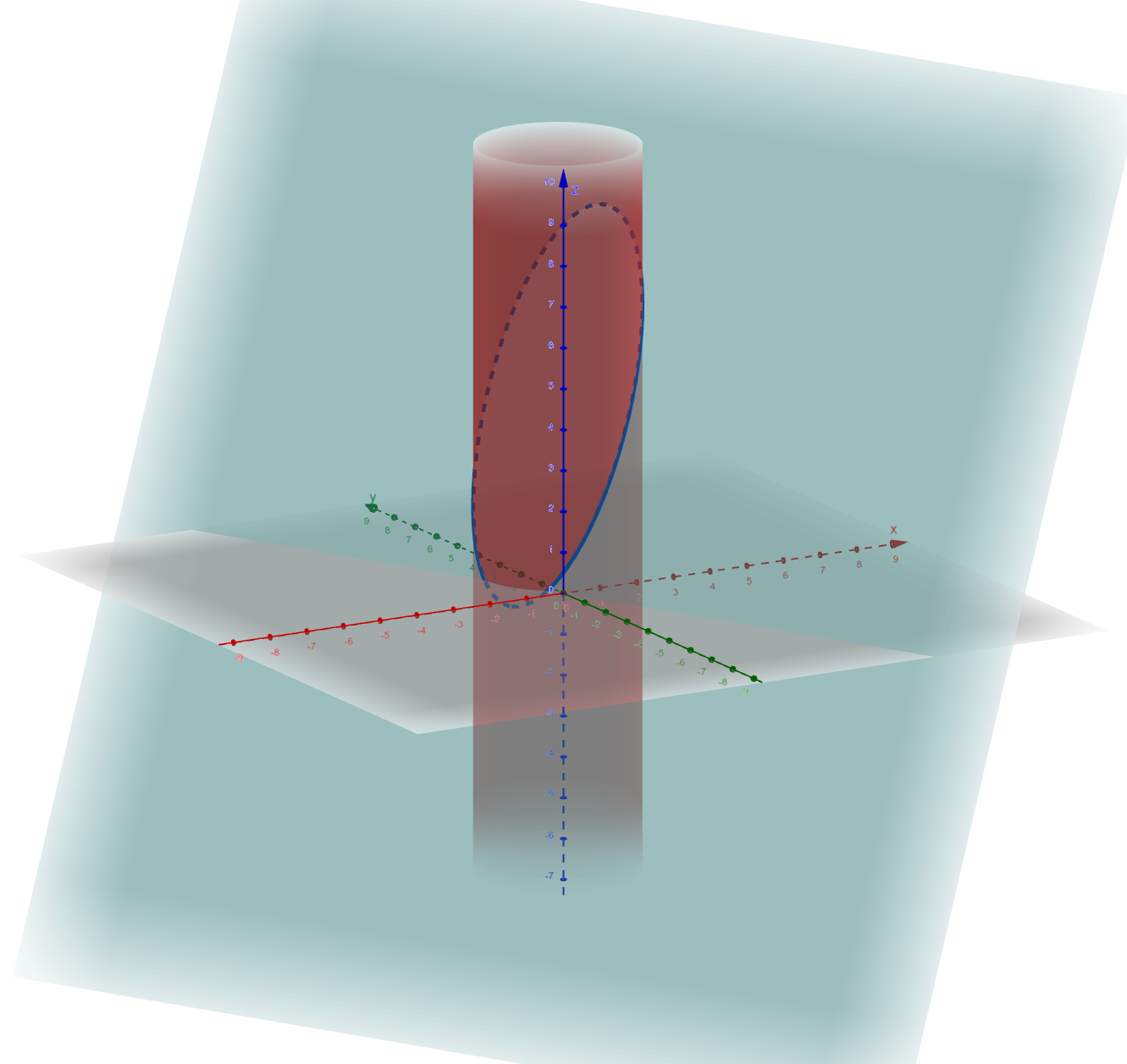 Såhär ser det ut när jag ritar upp den. Planet skär ju bara av en bit av cylindern, är kurvan verkligen sluten ??