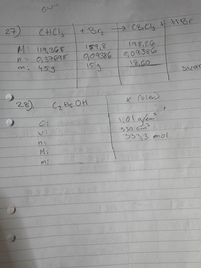 Givet ölens volym och densitet får du 333,3. Däremot är enheten inte mol utan något annat. Vet du vad?