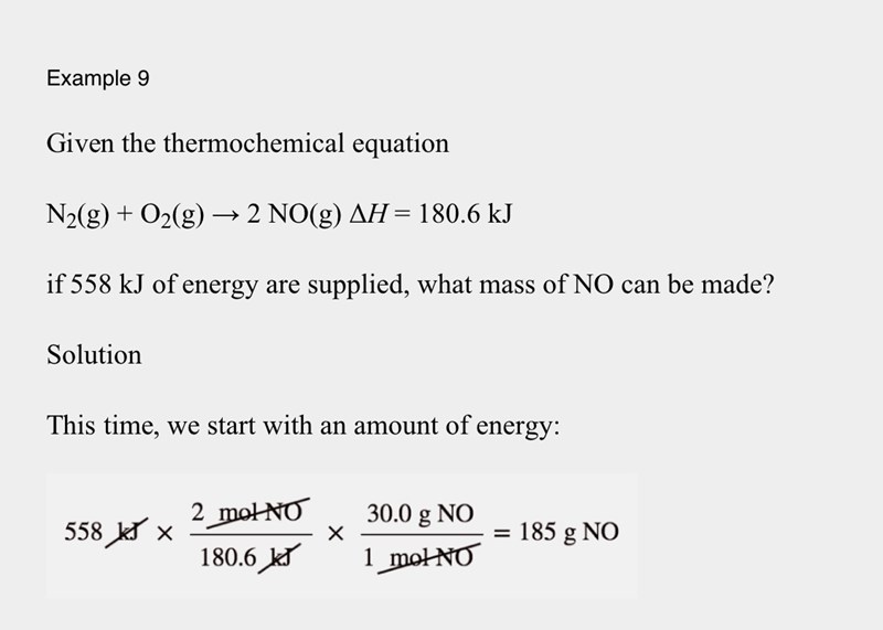 Har läst lite om stökiometri beräkningar med entalpi men förstår inte vartifrån 30g NO kom från i detta exempel.