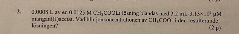 Jag tänkte att jag får ut två acetatjoner. Räknade de olika koncentrationerna, lade ihop dem och sen multiplicerade med 2.