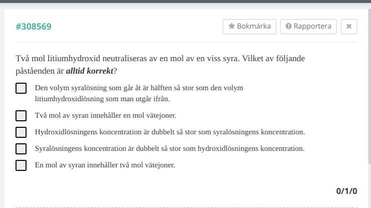 Svaret ska var en mol av syran inehåller två mol vätejoner, i vår lärboken står det däremot inte om neutralisering så skulle någon kunna förklara varför det just är två mol vätejoner? Tack!! :D
