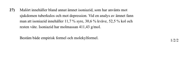 Problemet är att jag har svårt att hitta minsta heltal att multiplicera den empiriska formeln med. Då jag inte hittar sambandet.