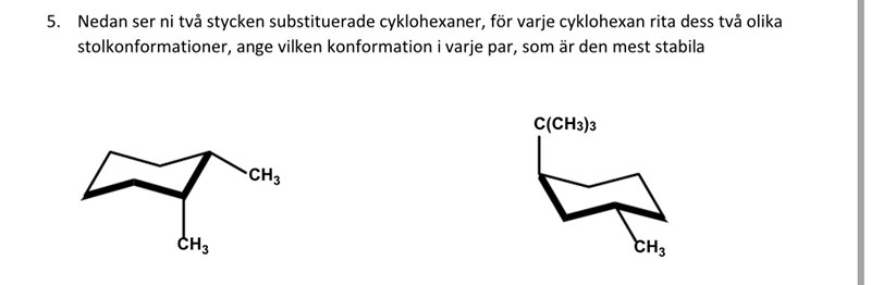 När du byter solkonformation (i det vänstra fallet kommer då den vänstra spetsen att peka uppåt) kommer substituenterna att byta axiell-ekvatoriell.