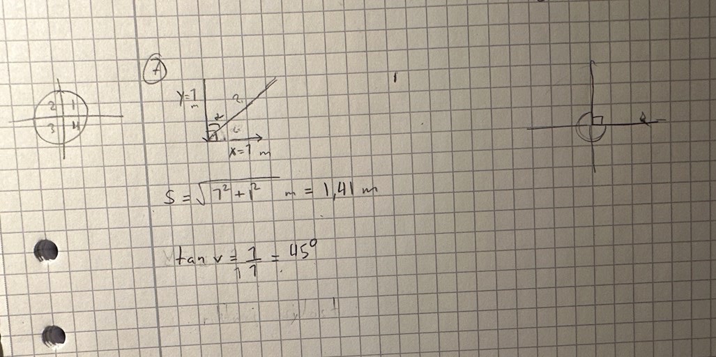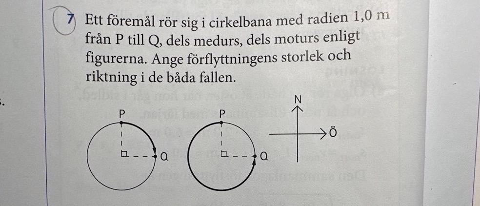 Förflyttningens storlek kan tolkas som ett kvarts respektive tre kvarts varv, men då böir det svårt att ange riktningen, när det gäller en cirkelrörelse.