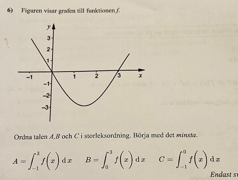 Skulle du med egna ord kunna förklara vad en bestämd integral är för något? Med den insikten kan du lösa uppgiften.