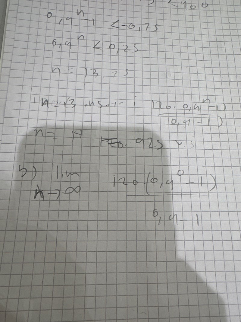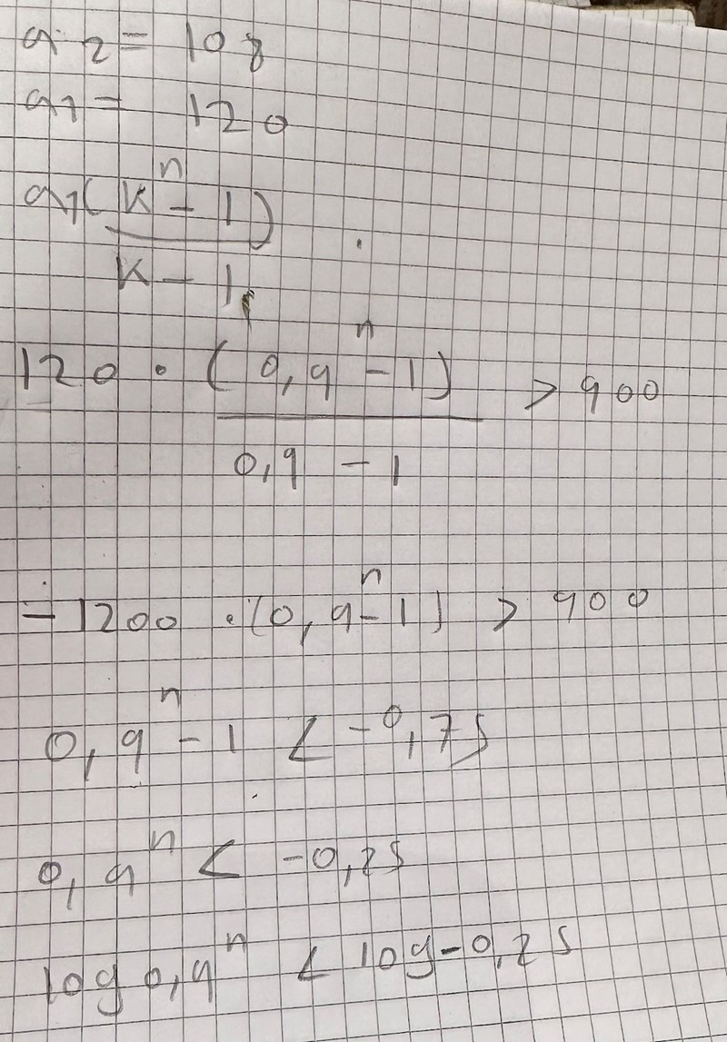 0,9^n  kommer närma sig noll, jag uppfattade det som att endast n närma sig noll fast inser nu att det är fel det är 0,9 inkluderat. Därför blir det 1200