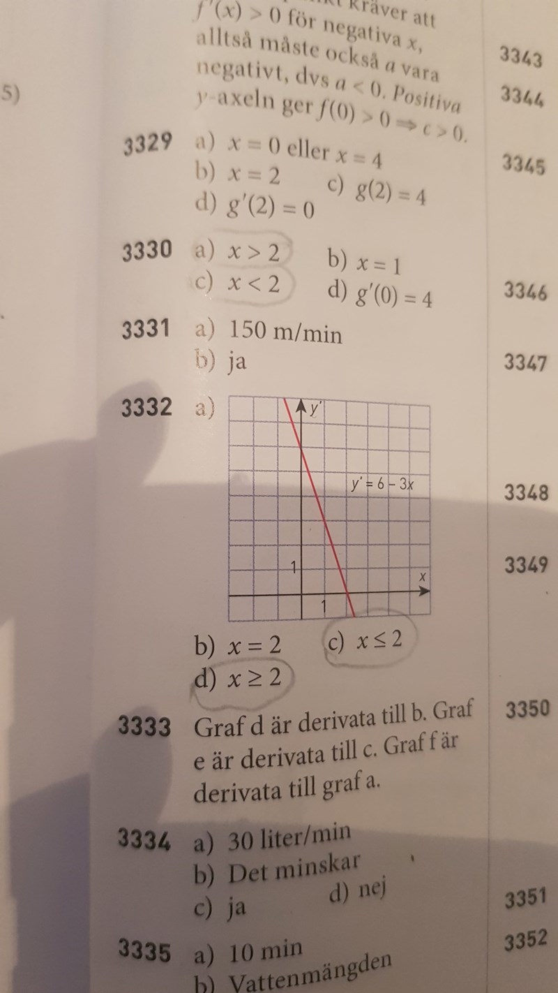 Laguna skrev:För en växande funktion får derivatan vara 0, så då blir det mindre/större än eller lika med.
