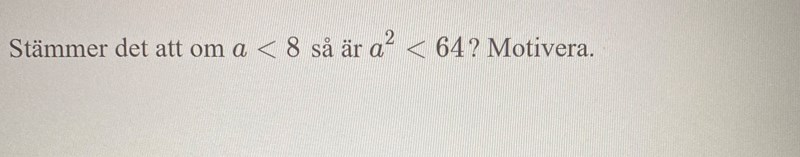 Ja, eftersom om a är mindre än 8 så ska a kvadrat vara mindre än 8 kvadrat.