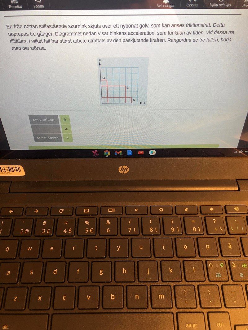 Hur kan en större hastigheten ge ett större arbete i denna uppgift? De säger att ju större arbete hinken utsätts för desto större hastighet (vilket är arean under grafen, v=a*t). Hur kommer det sig?