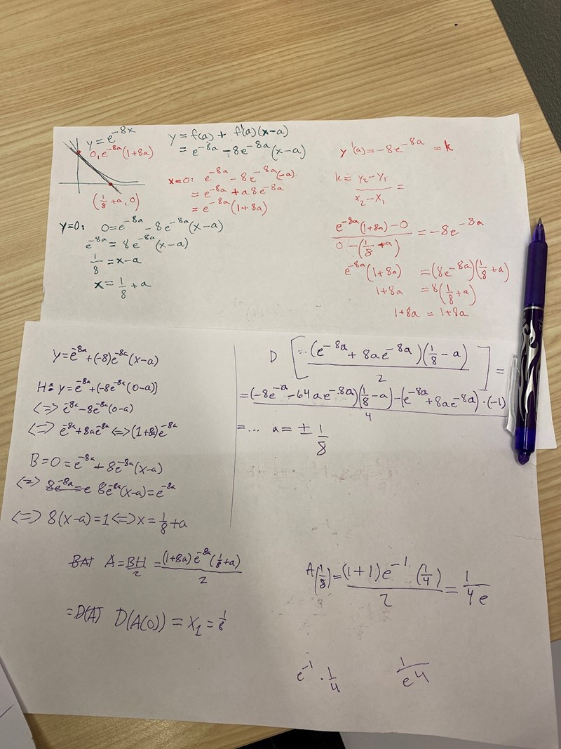 derivatan av b map a blir -8*e-8x = -8b, så om vi deriverar uttrycket för arean får jag