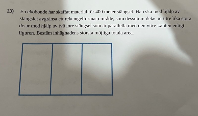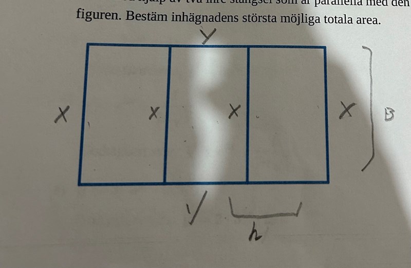Det stämmer inte med uttrycket duhar skrivit tidigare. Den här rektangeln har sidorna x och y, inte x och 3y som du har använt tidigare.