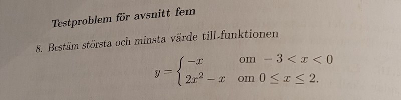 Men vi måste vara litet försiktiga. OM vi byter intervallet –3 < x < 0 mot –10 < x < 0 så hade det ju funnits större värden än 6 i det intervallet, men likafullt inget Största värde. I så fall hade funktionen saknat största värde.