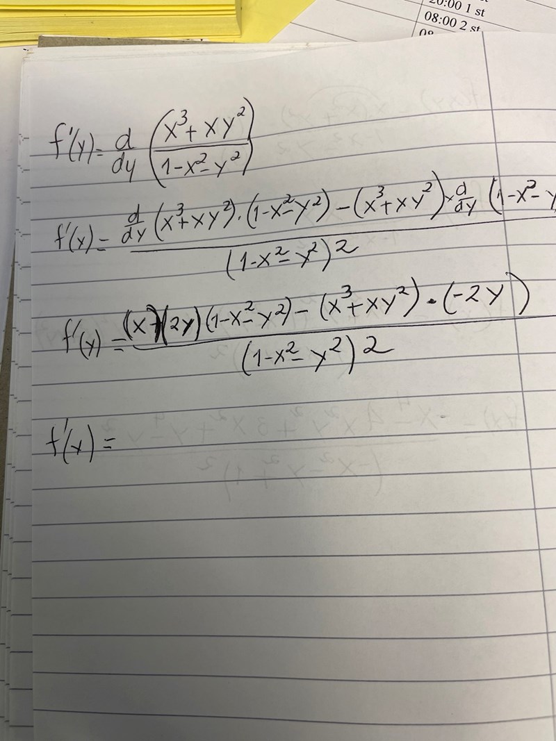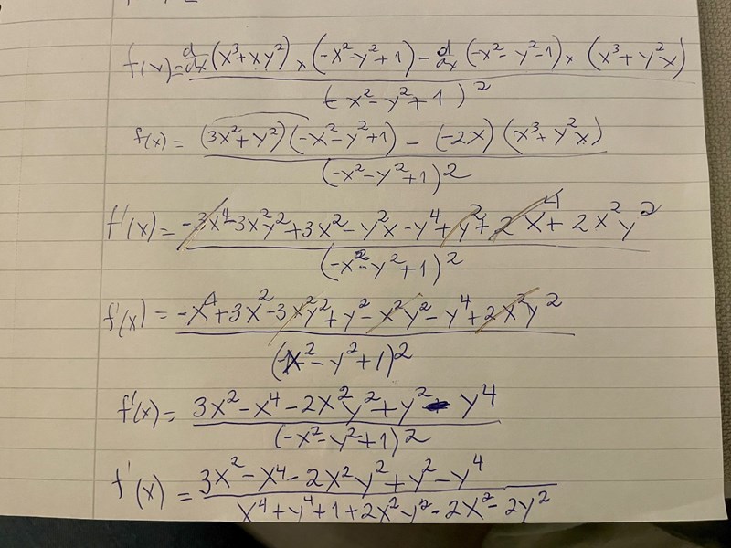 Det är lättare om du börjar med derivatan med avseende på y först. Se mitt tips i förra inlägget.