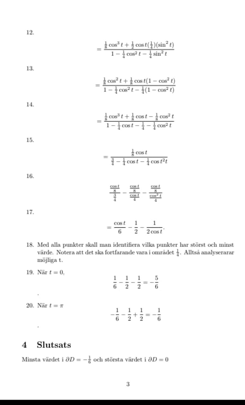 f(1/2, v) = (1/6)cosv. Så max = 1/6 och min = -1/6.