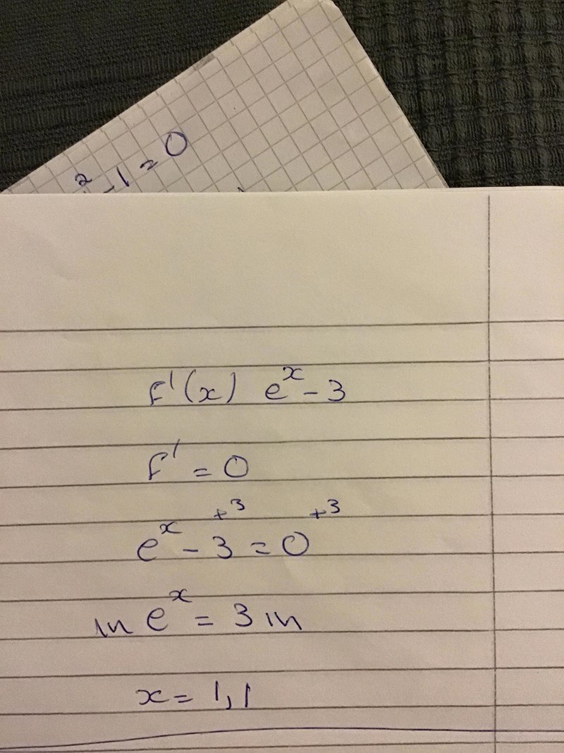 om f''(ln 3) >0 har du en minimipunkt, om f''(ln 3) <0 har du en maximipunkt.