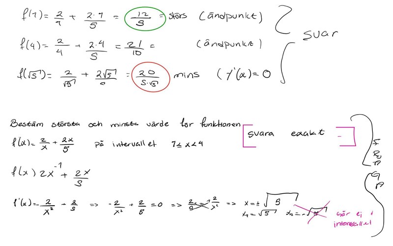 (I själva uträkningen så är det ett formellt fel när du beräknar värdet vid x=4x=4 eftersom den ändpunkten inte ingår i intervallet, men det borde inte spela någon roll om du endast ska ange svaret.)