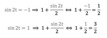 Nu inser jag att jag kanske ska derivera den parametriserade funktionen och sätta derivatan lika med noll? På så sätt får jag ju punkten B som är innanför randen, men den andra punkten A (värdet 1) får jag väl enbart genom att titta på figuren? Eller finns det något sätt att beräkna den utan figur?
