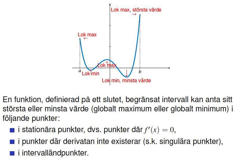 Ställde upp dessa i en teckentabell nu och såg precis att den ena extrempunkten jag räknade fram är utanför intervallet, tack!
