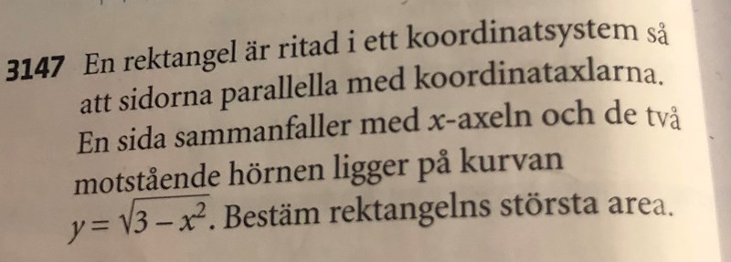 Arean på min skiss är grovt uppskattat ca 2*1,5=3 (men min figur visar INTE max area, bara en area som jag lätt kunde rita)