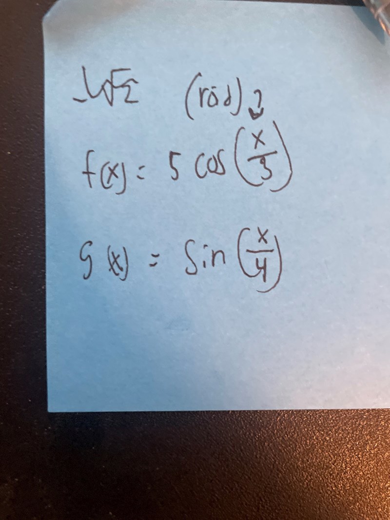 Vilken period har funktionerna i grafen? Vilka perioder har de funktioner som du skrivit ner? (Spoiler: en är rätt och en är fel)