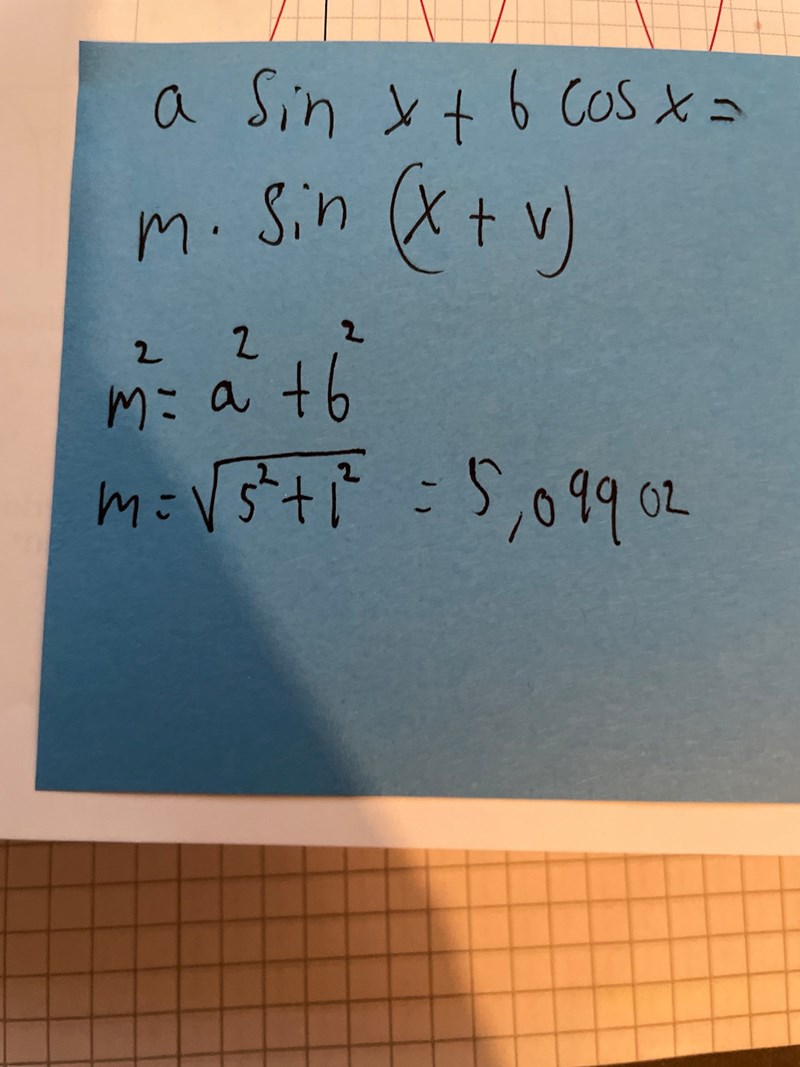 Hur menar du nu? Det är väl arctan b/a alltså 1/5. Jag behöver väl v för att vi ska räkna ut m * sin (x+v)
