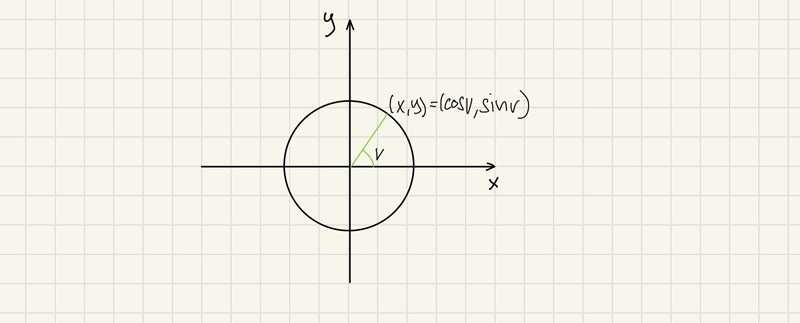 På enhetscirkeln gäller att x = cosv och y = sinv.