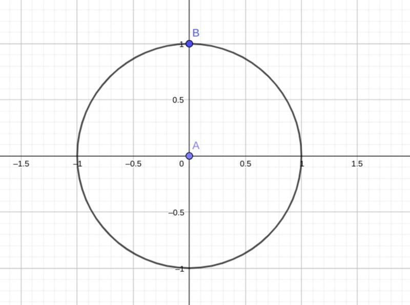 Angående cirkelns ekvation, vi kan beskriva en cirkel på följande vis: , där är mittpunkten. Eftersom vi har mittpunkten i origo kan vi skriva det som . Det finns dock en algebraisk lösning som inte involverar trigonometri.
