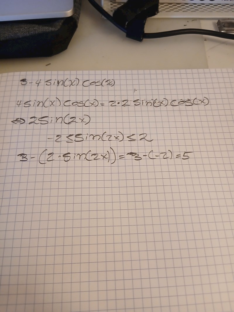 Nej, när sin(x)=1 är inte sin(2x)=1. Då är sin(2x)=0. Se enhetscirkeln. Däremot blir sin(2x) aldrig >1.