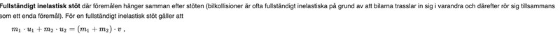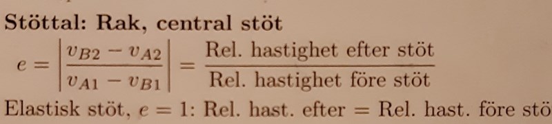 Samt sambandet som involverar stöttalet e. vB(t2) - vA(t2) = -e(vB(t1) - vA(t1))