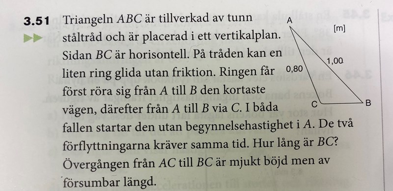 Kommer verkligen inte någonstans i denna uppgift… Förstår att på 1 m rör sig kulan under tiden t. Och på 0,8+x meter rör sig kulan på samma tid t. Men sedan vet jag inte hur jag går vidare…