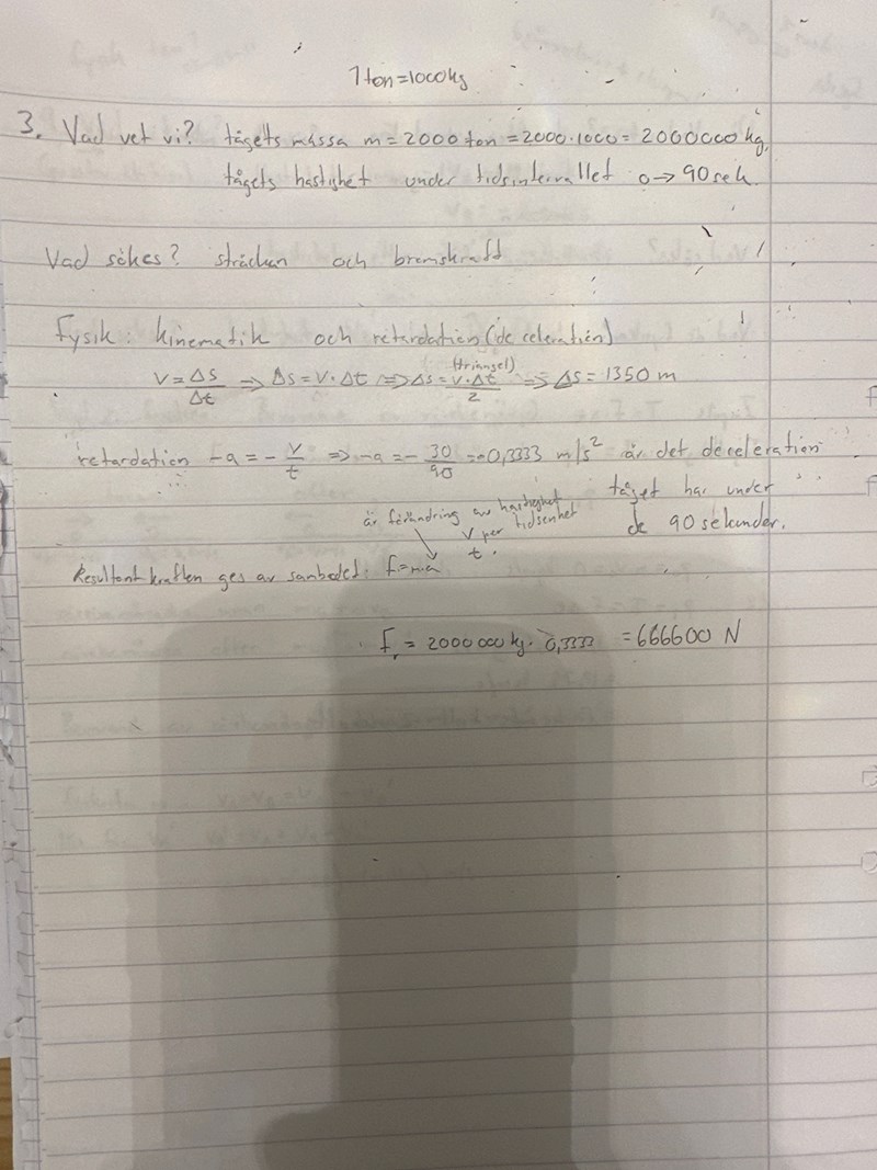 ska man räkna arean under grafen för att få bromssträckan?