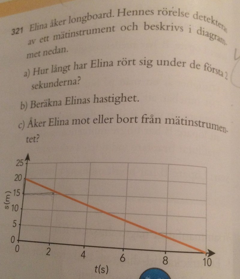 Men jag hade svarat 5m, för det är så långt hon rört sig. Riktningen är inte satt.