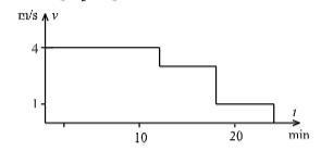 Jag tänkte att han har sprungit 11 min med hastigheten 4 m/s och efter att ha omvandlat 11 min till sekunder och multilicerat hastigheten med tiden fick jag 2 640 m. Sen så fick jag att han sprang med hastigheten 3 m/s i 6 min. Sen med hastigheten 1 m/s i ytterligare 6 min. Efter att ha beräknat alla sträckor adderade jag dem och fick svaret 4080 m, men enligt facit är svaret 4,3 km.
